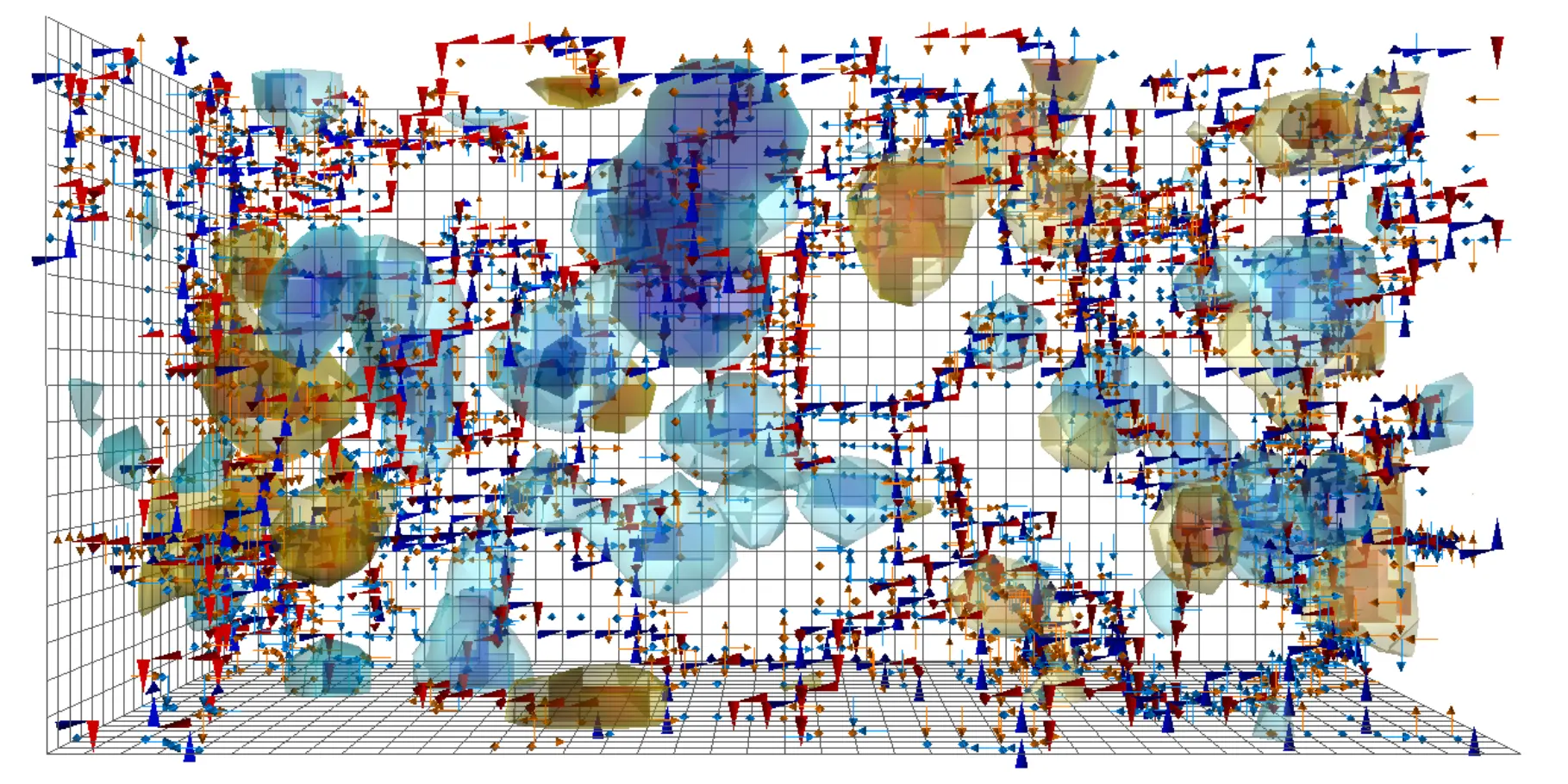 The majority of the short positive electric field particles move in one direction, and the majority of the short negative electric field particles move in another direction, the two directions being at an angle to each other