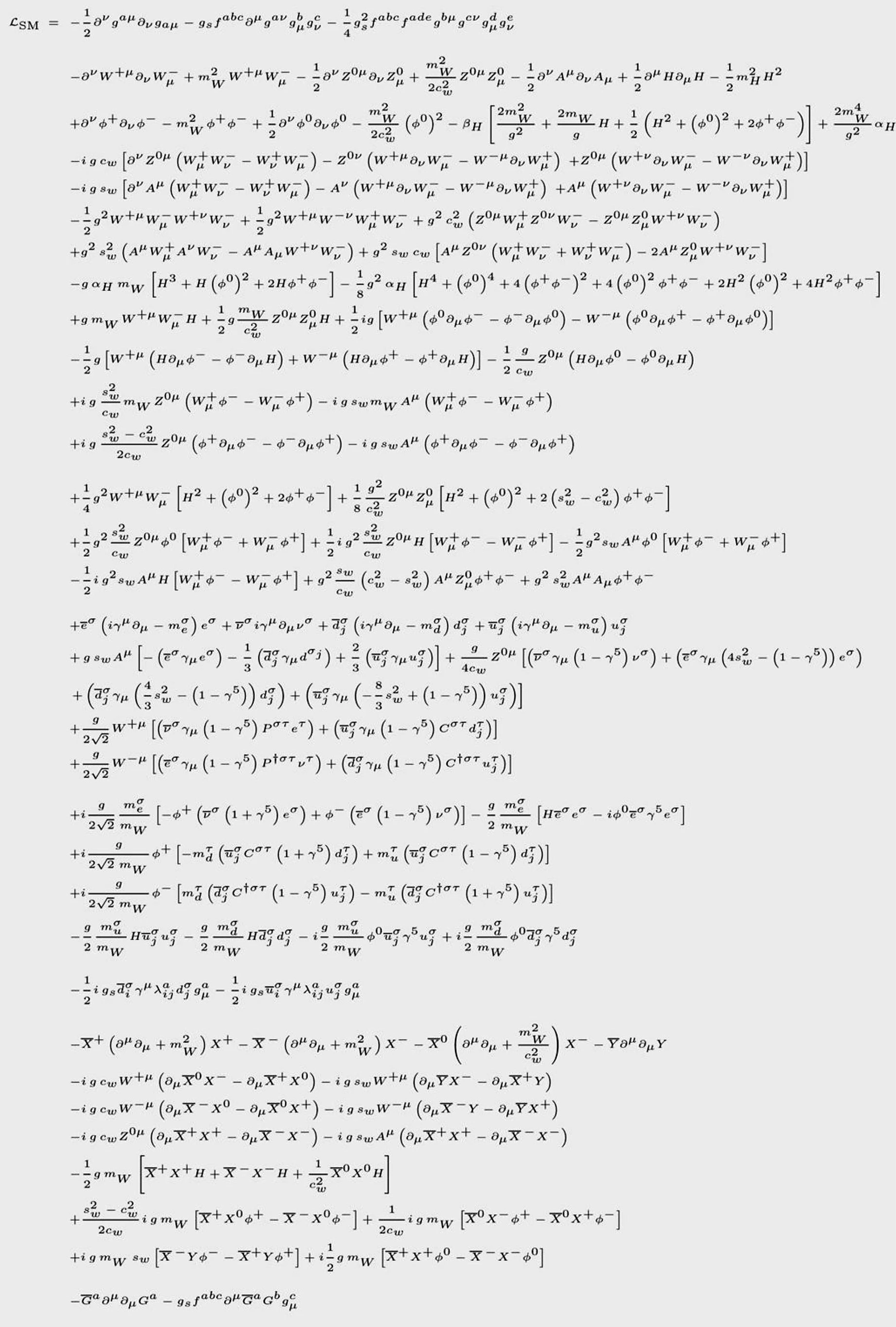 For reference, this is the Lagrangian equation that is used in the Standard Model of particle physics